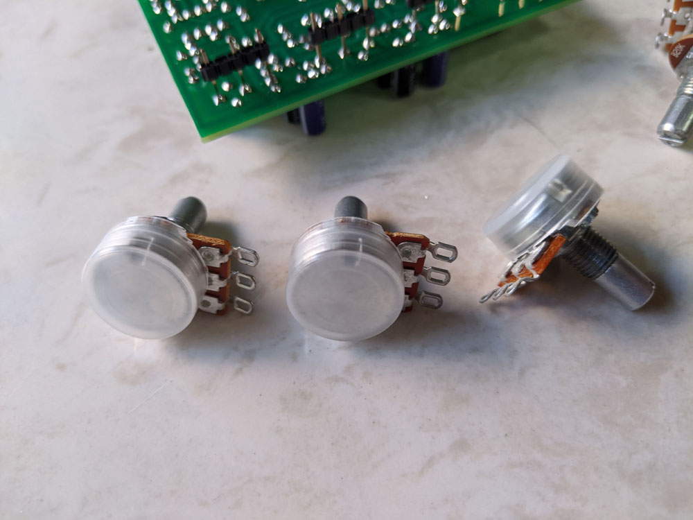 組み立ては部品点数は多めですが基板上にポット直付けなので配線は少ないです。ポットの取り付け方