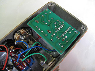 部品点数も少なく製作は簡単な方です。小さなトランスがありますがケースに収める時は少し工夫が必要です。ポットと重なるとフタが閉まらなくなるのでポットと重ならないように基板を設置します。右写真のようになりますがフタの裏側にはテープなどを貼って絶縁してください。