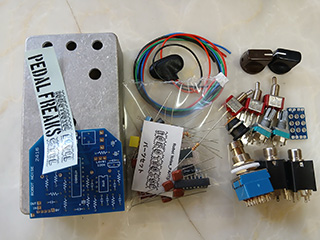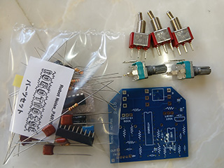 専用プリント基板とパーツ、ポットのセットです。キットマニュアルが付属します。GIO9コネクタ付属。