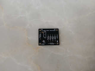 基板の裏にはシルク印刷でパターンが描かれています。このパターンのラインに沿ってリードを曲げて結線していきます。