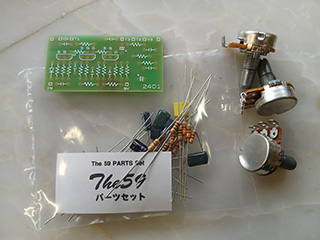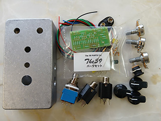 専用プリント基板とパーツ、ポットのセットです。写真以外のパーツは付属しません。キットマニュアルが付属します。